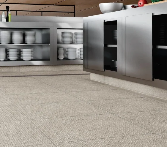 Weil die Oberflächen einer höheren mechanischen Belastung ausgesetzt sind als in einem Privathaushalt, muss der Boden widerstandsfähig und zudem so beschaffen sein, dass er Unfällen durch Ausrutschen entgegen wirkt.